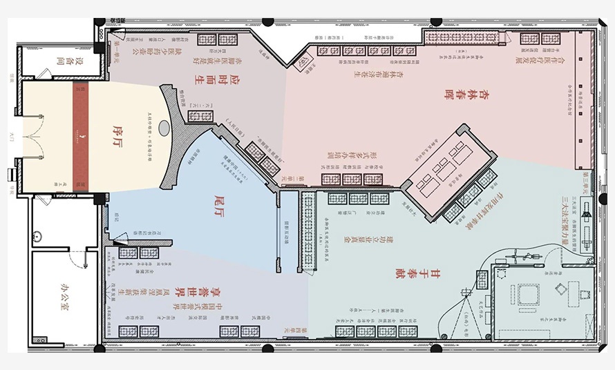 將企業發展當前階段的戰略規劃提煉,形成空間關鍵字,并結合融入到整個空間的平面布局之中,使整個空間更有主題規范性,提高企業空間的瀏覽體驗。