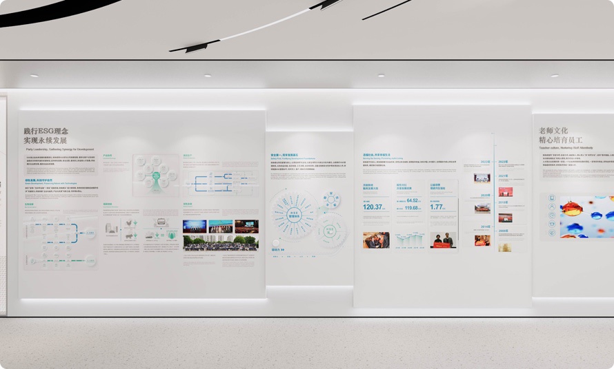 提煉企業核心價值理念,與空間整體功能性結合,結合合理動線設計,強化空間體驗感。